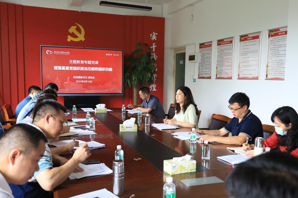 6月16日上午,根据学校主题教育工作安排,校党委副书记梁艳珍在广州新港校区为全校二级党组织书记讲授“增强基层党组织政治功能和组织功能”专题党课。