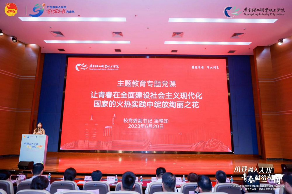根据学校主题教育工作安排,6月22日下午,学校党委副书记梁艳珍在南海北校区图书馆报告厅为参加2023年暑期社会实践的师生代表讲授“让青春在全面建设社会主义现代化国家的火热实践中绽放绚丽之花”主题党课。学生工作部、校团委、各二级学院党团组织负责人共同参加学习。