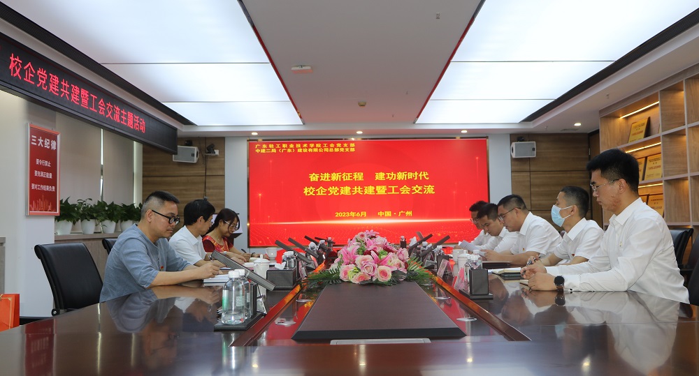 一、党建引领,构筑校企和谐之家。党委委员、工会主席石朝阳带领学校工会党支部书记、宣传委员一行三人,赴中建二局广东分公司开展校企党建共建暨工会交流活动,深入学习习近平总书记主持中共中央政治局第二次集体学习发表重要讲话精神,双方人员就校企支部共建、工会合作,特别是单身青年联谊等方面工作进行了深入的探讨和交流,进一步密切了校企的联系,拓展了工会合作服务平台,为服务好广大教职工、构筑和谐大家庭,凝心聚力推动学校高质量发展打下坚实的基础。
